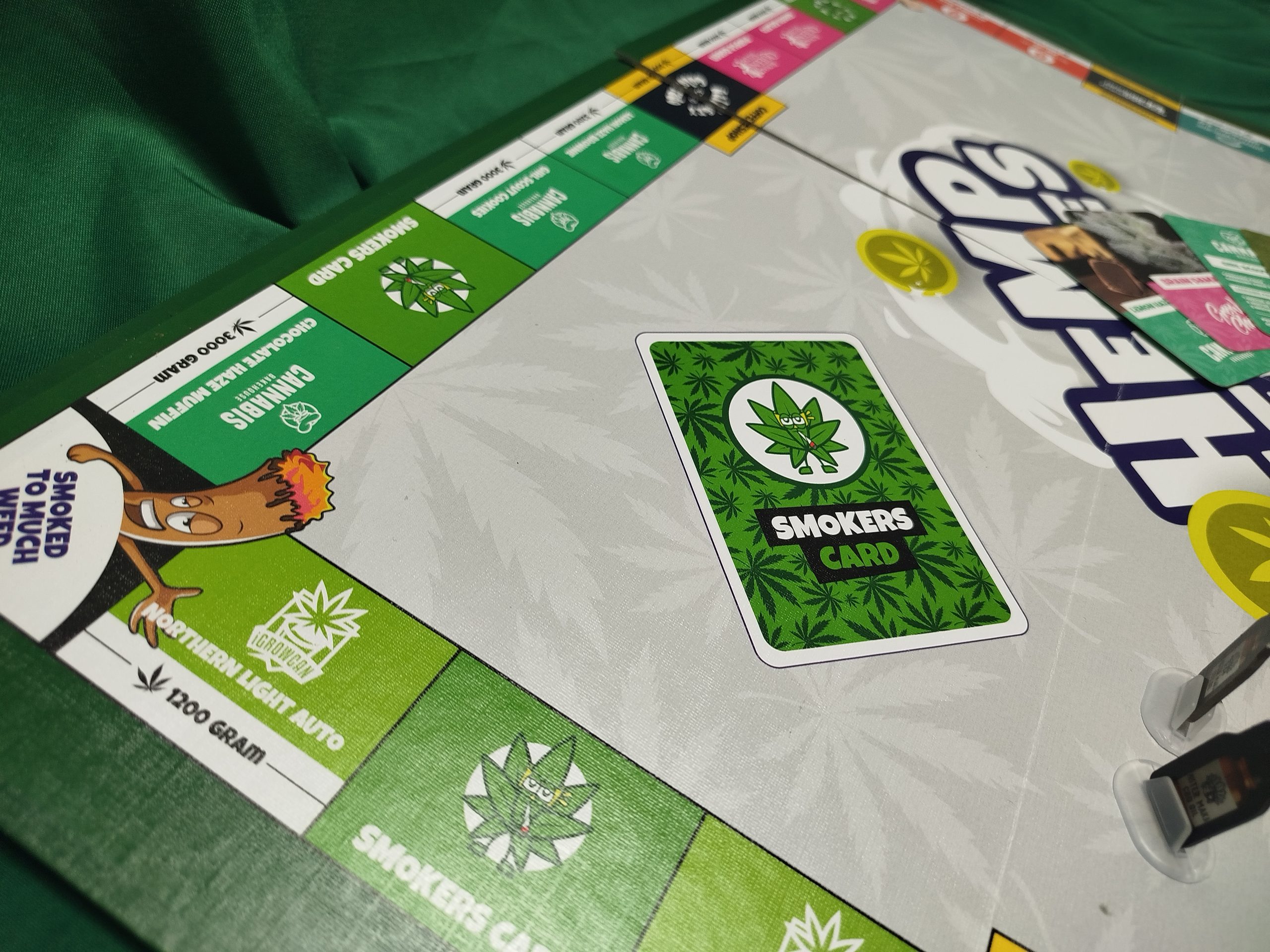 Wenn du auf einer Cannabissorte oder einem Coffeeshop landest, der noch nicht verkauft wurde, kannst du ihn kaufen. Das Geld geht zurück in die Cannabisbank. Und du bekommst die Eigentumskarte der Sorte. Du kannst dich auch entscheiden, die Sorte nicht zu kaufen. Aber wenn sie bereits verkauft wurde, musst du die auf der Eigentumskarte angegebene Grammzahl kaufen! Was passiert, wenn du auf Zu viel Weed geraucht landest? Dann musst du eine Runde aussetzen. Jedes Mal, wenn du auf Start landest oder daran vorbeigehst, bekommst du 2000 Gramm von der Cannabisbank.