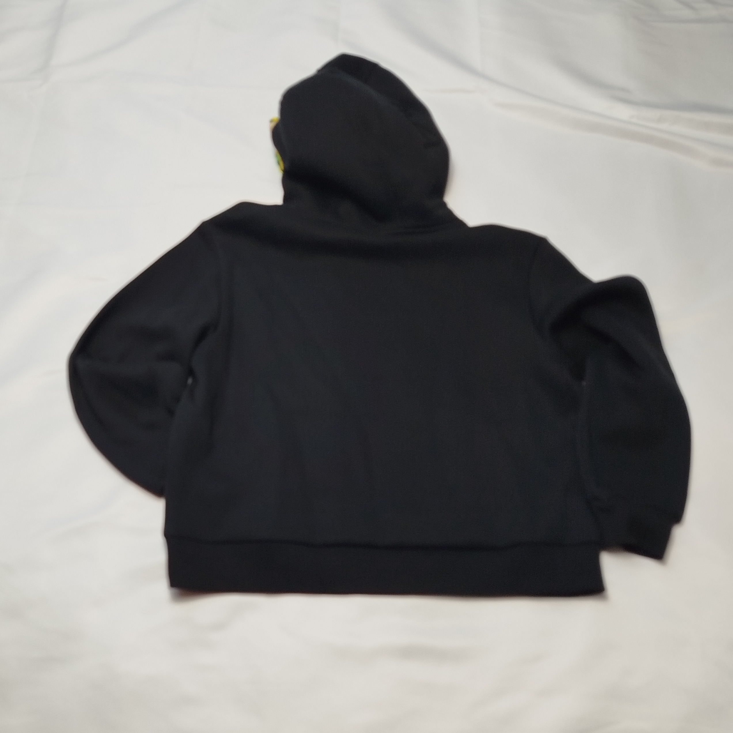Die Kapuzenkordeln in Neon-Gelb und Grün setzen einen elektrischen Kontrast zum schwarzen Stoff und machen den Hoodie zu einem echten Blickfang. Der Fit ist relaxed, das Material weich und robust — perfekt für Alltag, Studio, Straße oder Festival.
