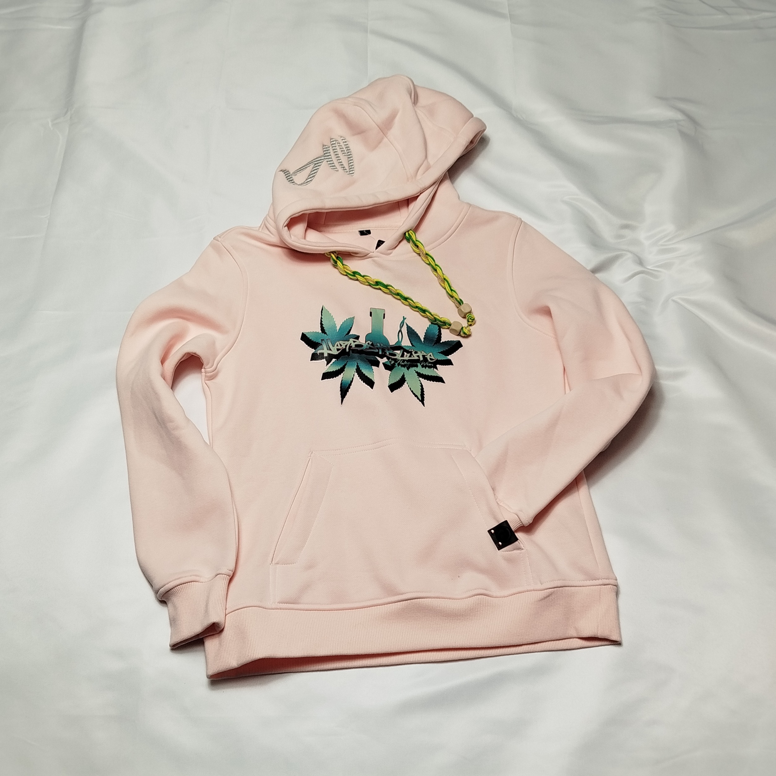 Dieser Hoodie ist ein Widerspruch zum Anziehen — softes Rosa trifft auf kompromisslose Botschaft.